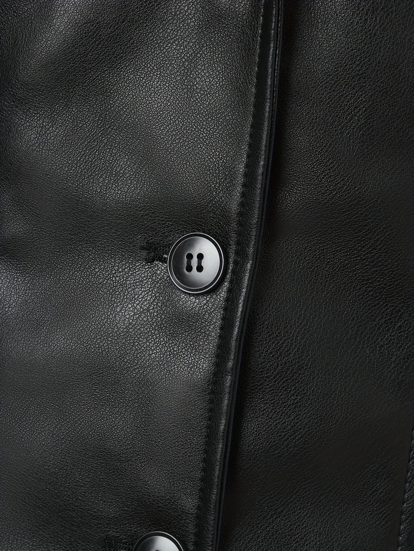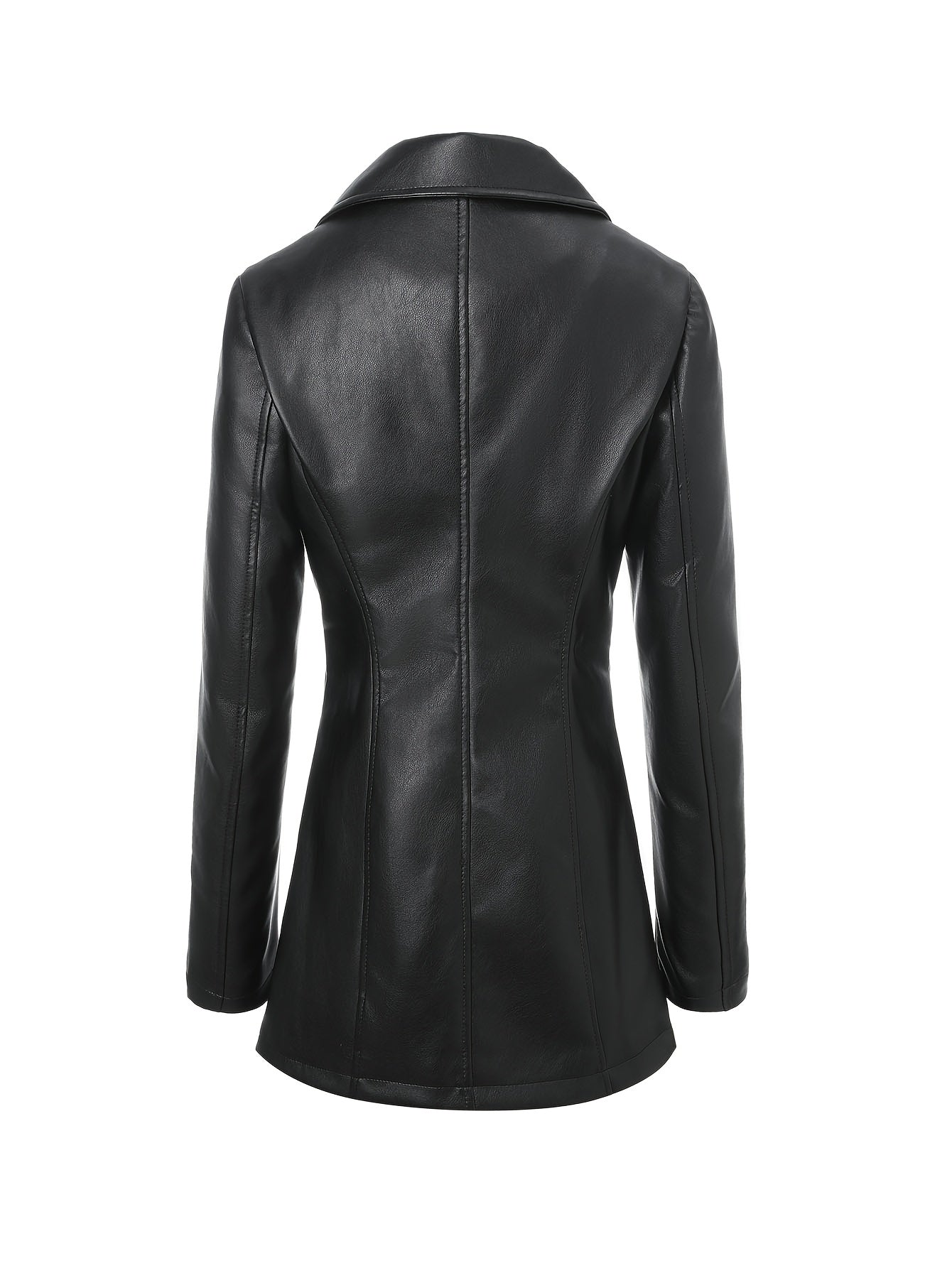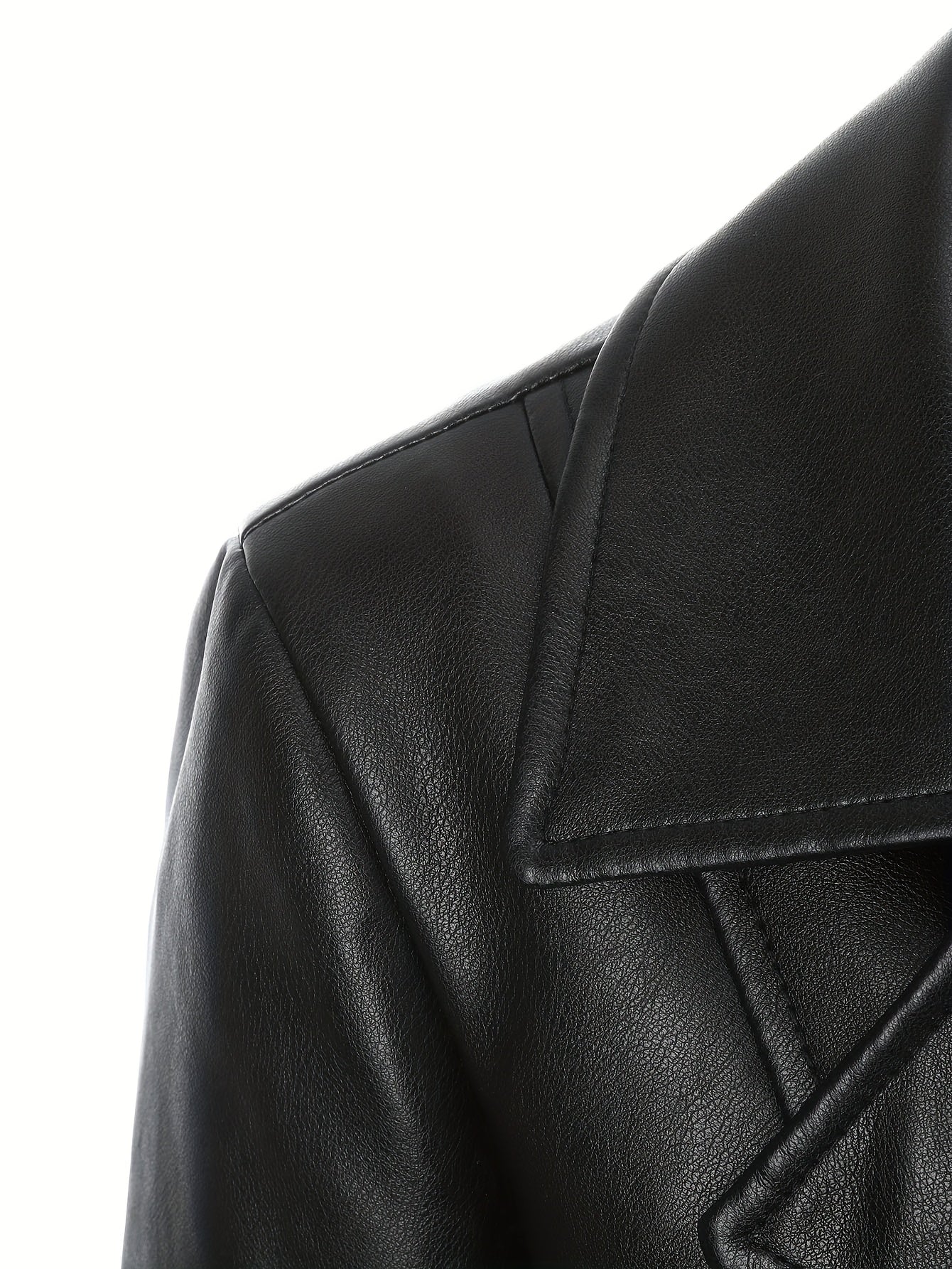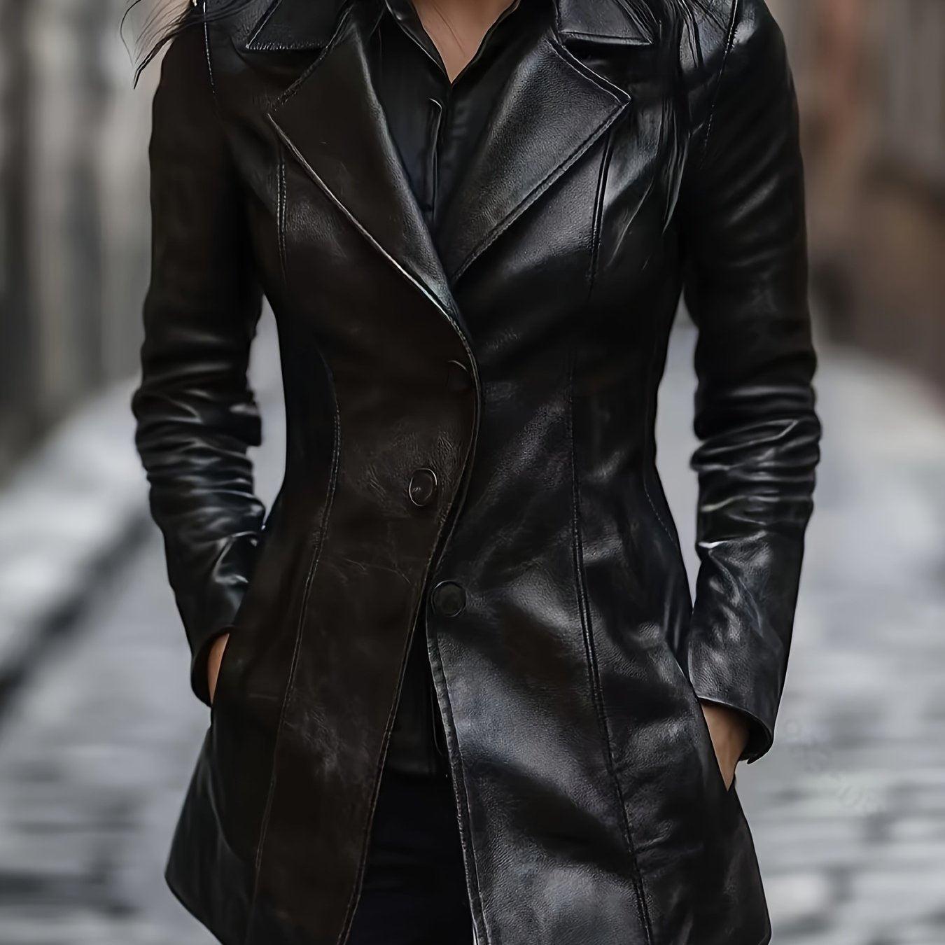 Atara – Eleganter PU- Ledermantel mit Revers & A-Linien-Schnitt