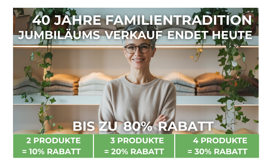 Zum Jubiläum von 40 Jahren österreichischer Tradition bieten wir für kurze Zeit besondere Jubiläumsrabatte an.