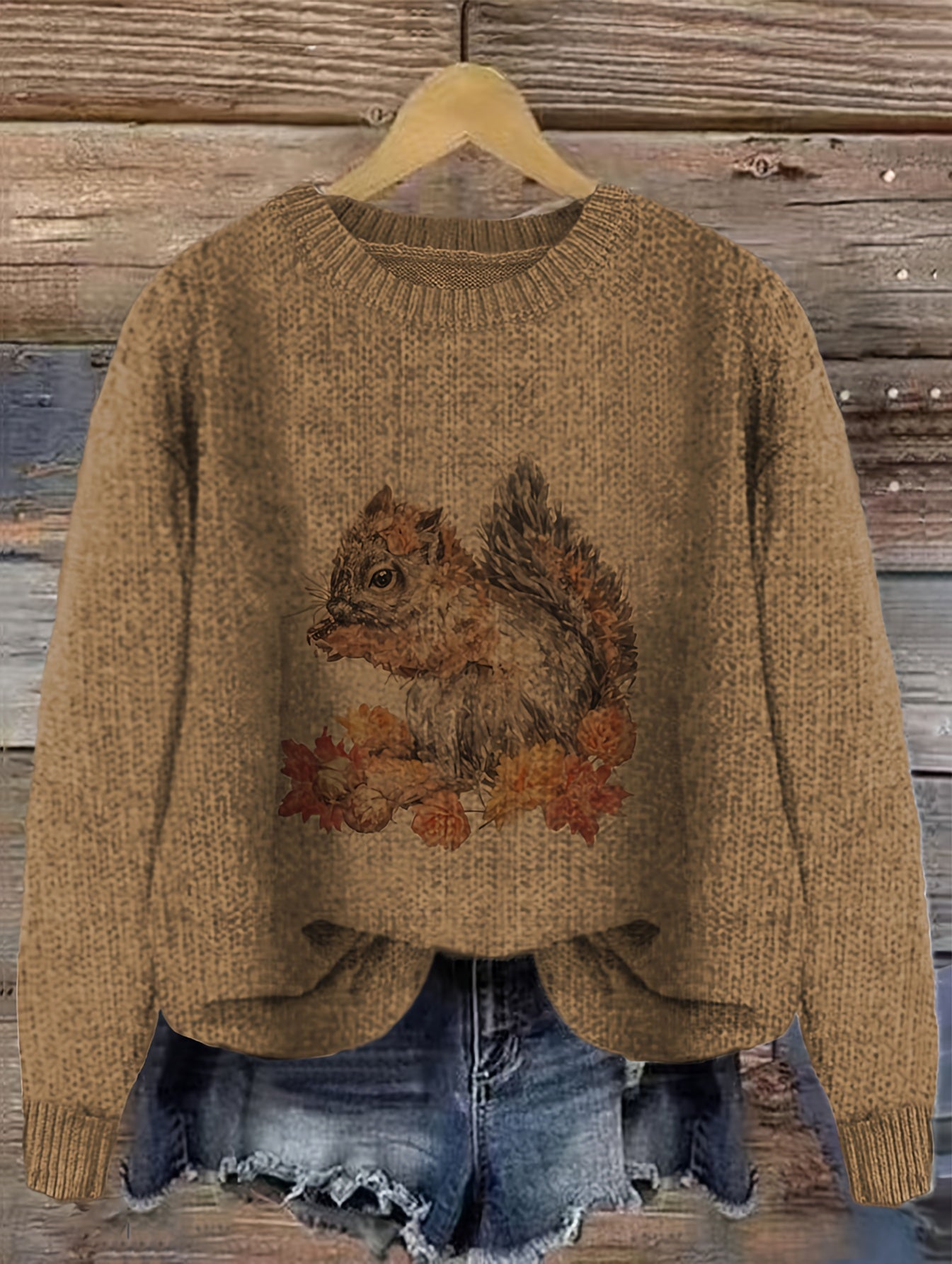 Gracen – Damen Pullover mit Eichhörnchen-Print